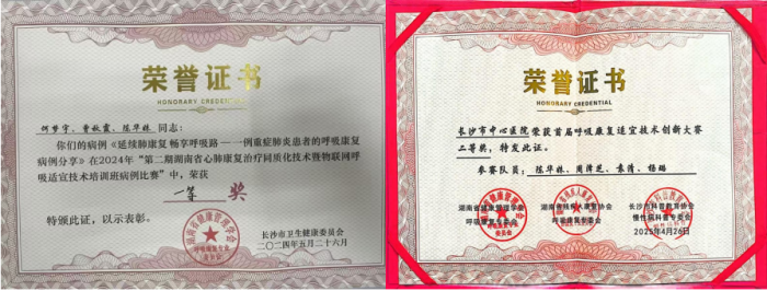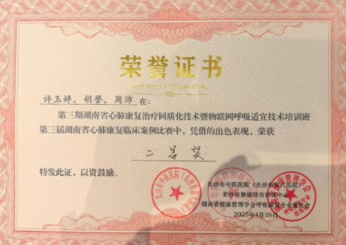 呼吸康复团队何梦宇、曾秋霞、许玉婷、胡誉、周沛、杨璐、周泽芝、袁清、王青等团队成员,凭借扎实的专业功底、敏锐的临床洞察力以及出色的团队协作能力,在多个省级案例比赛中大放异彩,斩获一等奖、二等奖等多项荣誉。