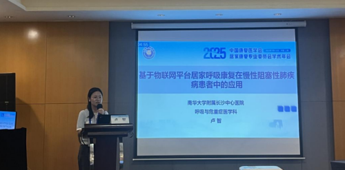 呼吸康复团队的卢智、陈华妹、杨璐三位成员联合登台,向全国同行展示了《基于物联网平台居家呼吸康复在慢性阻塞性肺疾病患者中的应用》这一前沿研究成果。