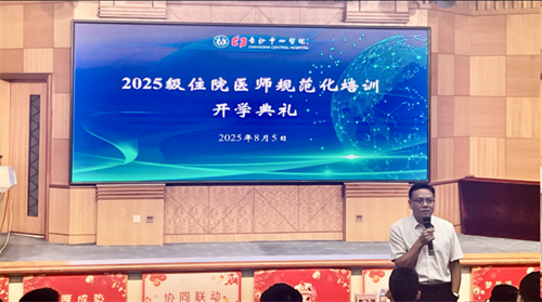 赵飞骏围绕“成长与修为”向新生提出三点殷切期望:第一,见贤思齐,与优秀同行。“三人行必有我师”,要主动向身边的榜样学习,在切磋琢磨中精进医术、提升自我;第二,修身立德,铸就医者风骨。强调“医德是立身之本”,唯有以包容之心待人、以仁爱之心行医,方能赢得患者信赖与社会尊重;第三,笃行不怠,追梦无悔。路虽远,行则将至;梦虽遥,追则能达,鼓励住院医师以坚韧的意志迎接挑战,在医学征程中书写青春华章。