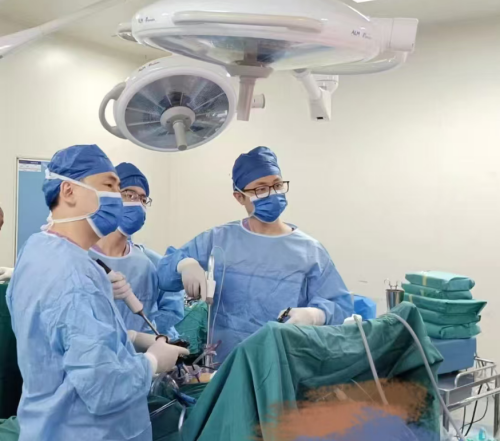 与此同时,一场无声的“生命护航”精密启动。肝胆脾胰疝外科立即启动了院内多学科会诊,心血管内科专家精准调控抗凝药物至安全范围,麻醉科量身定制最稳妥的麻醉方案以最大限度保护脆弱心脏;消化内科王俊副主任医师科学评估患者手术耐受能力,谢开汉科主任汇总多学科意见后提出将胆管取石分两阶段进行——先行内镜微创放置鼻胆管引流,解除梗阻、控制感染,再行取石术,待稳定后行腹腔镜胆囊切除术。内分泌专家则全程护航,动态调整血糖管理策略。最终,主刀团队凭借娴熟的三孔腹腔镜技术,在最小创伤下顺利完成手术,术中出血极少,且避免了常规的腹腔引流管放置,为林芳快速康复奠定基础。