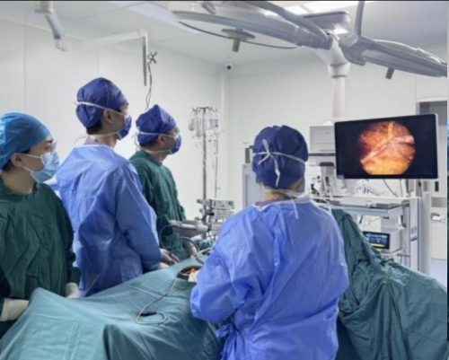 面对这一复杂棘手的病例,乳腺甲状腺外科陈智峰副主任医师及专家团队进行了全面细致的评估。考虑到隆胸材料渗漏后与组织紧密混杂、取出难度极大的特点,为最大程度减少手术创伤、提高清除效率并促进术后快速恢复,团队决定采用先进的腔镜辅助技术来完成手术。