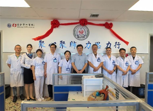 高质量发展。袁主任指出,科室发展不仅依靠技术进步,更需凝聚文化内核。为此,科室精心设计并发布了专属科徽与科训“聚心聚肺、力思力行”。科训由杨继承副主任阐释:“聚心聚肺”既体现专业特色,也象征医者凝心聚力、共护健康;“力思力行”则倡导勤思笃行、务实进取。科徽融合心肺图形、生命幼苗与院徽元素,标注建科年份“1987”,以蓝、绿、红三色分别象征胸怀格局、生命活力与医者热忱,传递专业使命与责任意识。