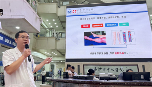 在科普讲座中,外周血管介入科主治医师邓江北指出,静脉血栓形成的三大条件是血流瘀滞(如久坐)、血管内皮损伤(如手术)和血液高凝状态(如肿瘤)。高龄、久坐/卧床者、孕产妇、肿瘤患者、术后人群、肥胖及有血栓家族史者属高危人群。他强调:“长途旅行或久坐办公可能诱发深静脉血栓,甚至引发致命肺栓塞”,建议市民避免久坐久站、适时活动下肢,术后患者需及早下床。如果发生深静脉血栓,治疗上需三管齐下: