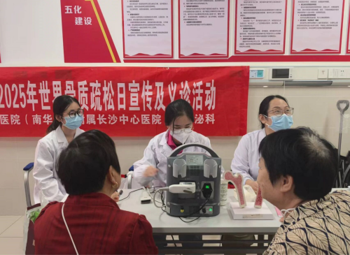 内分泌科积极行动:10月15日上午,专家团队深入雨花区洞井商贸城社区,为居民提供骨质疏松风险初步筛查服务,涵盖骨折风险问卷、部分骨密度快速检测等项目,还开展一对一健康咨询,深受居民欢迎。10月16日上午,医护人员在病房为住院患者及家属开展了专场骨质疏松科普宣讲与义诊活动,将骨骼健康知识送到病床边。