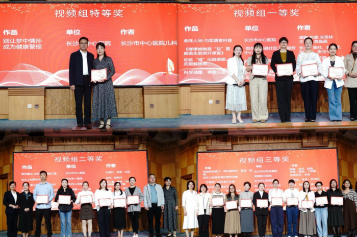 视频组一等奖:雨花亭街道社区卫生服务中心选送的《嗲嗲娭毑莫“盐”重,家庭医生厨房开课堂》、长沙市中医立博体育 (长沙市第八立博体育 )选送的《油盐“减”出健康路,直播间里解困惑》《科学减重,享瘦人生》、立博体育 选送的《食味人间-匀浆膳食科普》;