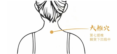 大椎穴:位于颈后最高骨下方。用艾灸灸此穴10分钟,能振奋阳气,抵御外寒。