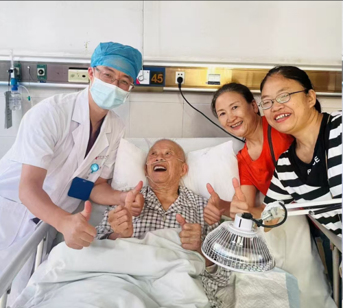术前,刘松华团队利用超声对刘婷进行了细致评估,反复确认神经阻滞靶点、穿刺路径,探查周围畸变的解剖结构,并对气道进行了全面超声检查。术中,刘松华采用超声引导下的神经阻滞技术替代传统局麻,有效阻滞手术切口区域。宝宝安全娩出后,仅使用少量全麻药物便平稳完成了剩余手术。在多学科团队的完美协作下,这场高难度手术麻醉最终大获成功,获得了患者及家属的高度赞誉。