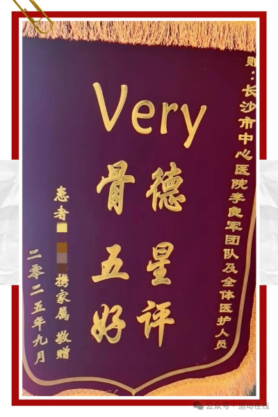 出院时,李女士亲手送上一面特意定制的锦旗。锦旗不大,甚至可以说有点“玲珑”,上面的字却格外霸气:“全湖南最美最飒医术最高的主任”。她真诚地说道:“是你们的专业与温柔,让我摆脱多年折磨,重获轻松生活!”