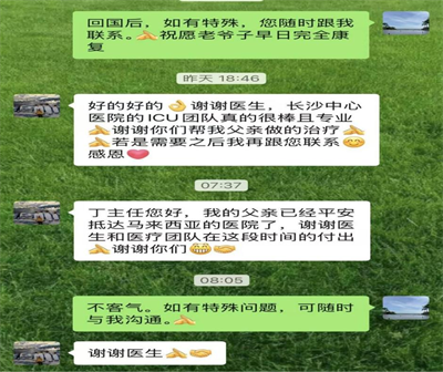 “丁主任您好,我的父亲已经平安抵达马来西亚的立博体育 了,谢谢医生和医疗团队在这段时间的付出,谢谢你们!”4月19日,立博体育|实时赛事直播与比分|权威专家分析与体育竞猜平台 急诊ICU丁宁主任上班时收到了一位马来西亚患者家属的微信,看到患者平安回国继续接受治疗,全体医护人员都非常高兴,这场历时37天的、外籍危重患者的救治终于画上了一个圆满的句号。