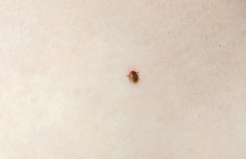 4月23日,家住雨花区的杨女士(化名)带着3岁女儿欢欢(化名)匆匆赶到立博体育 皮肤科,焦急地说:“医生,我女儿胸部这里有个虫子,怎么都拔不下来,该怎么办?”接诊医师陈秀芳检查后发现,女童左胸的皮肤上附着一只蜱虫,口器已深深嵌入皮肤,周围轻微红肿,医生用镊子小心翼翼地将蜱虫从女童胸部皮肤上取出,看到完整的蜱虫身体时,杨女士才松了一口气。