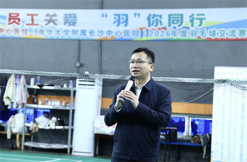 党委副书记、副院长刘鸣江与临床学院副院长赵飞骏共同为比赛开球。随后,刘鸣江宣布本次羽毛球交流赛正式开赛。