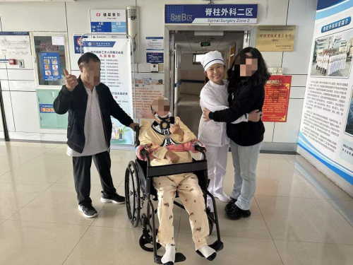 手术成功只是第一步,术后的护理与康复同样至关重要。在许湘红护士长带领的护理团队专业照护下,张阿姨恢复情况远超预期:从术后四肢毫无知觉,到逐渐能活动手指、抬动手臂,再到可以自主翻身、坐起,最终肢体肌力恢复到4级,顺利出院。