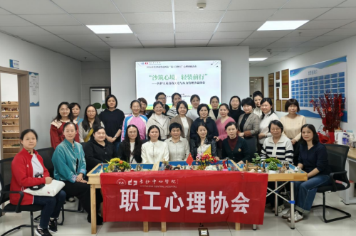 员工心理协会于4月23日下午,在长沙市尚上心理科普公益服务中心组织了一场名为“沙筑心境,轻装前行”的沙盘团体心理辅导活动。院工会副主席谈慧、员工心理协会会长方珊珊与30余名医护员工共同参与了这次体验。