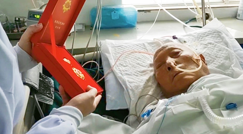 重症医学科主治医师李圆菲介绍,早年的艰难困苦给老人身体带来较大的损害,这三十余年来,老人曾多次在立博体育 老年医学科住院,这次是因呼吸衰竭、血氧饱和度下降行气管插管后于4月27日转入重症医学科,诊断为前列腺癌并骨癌转移、肺部感染、呼吸衰竭、慢性肾脏病、低蛋白血症、脑梗死、冠心病、慢性心力衰竭等18种疾病。但是这个九十二岁高龄的老党员,在与疾病的抗争中依旧保持着顽强的战斗精神,不屈不饶的和病魔斗争,给医护人员带来了极大的激励和鼓舞。