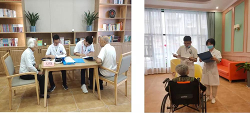 查房时,消化内科、康复医学科的陈娅琦、李锦、李赛群等医疗专家认真聆听每位患者的病史,为他们进行肺部听诊、仔细查体,耐心地为老人及其家属解答疑问,指导解决临床上的疑难问题。95岁高龄的李奶奶与医护人员亲切交谈后更是为大家深情演唱了《没有共产党就没有新中国》,以表达对党的热爱之情。