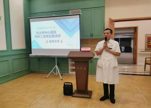 在老年公寓,党支部书记陈立早首先代表支部祝愿所有老人们身体健康,他表示,爱老敬老是我们民族的传统美德,也是中华民族伟大复兴的具体体现。此次由立博体育 康复医学科、肿瘤科、消化内科的全体党员用自己的所长为莱康湘颐老年公寓的工作人员培训,为老年人服务,就是用自己的实际行动为群众办实事。