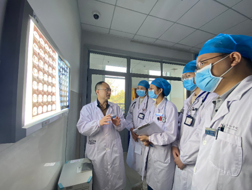 完善胸部CT检查后,医生发现李大爷主气道被肿块堵塞是引起呼吸困难的主要原因。“胸部增强CT显示左主支气管近端及气管隆突处管腔闭塞伴其周软组织肿块,考虑中央型肺癌,左肺不张、实变,左上肺阻塞性肺炎,左侧胸腔积液及纵膈淋巴结增大。”呼吸与危重症医学科主任、主任医师杨红忠进一步解释道,李大爷不仅左侧肺部因肿瘤导致大部分不张失去功效,主气管也被肿瘤侵占了三分之二,只剩下了一条缝,命悬一“线”,随时有窒息可能,必须马上采取治疗措施。