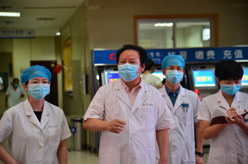 肖玉坤表示,要维持好检测秩序,从严落实“两码联查”、体温检测、佩戴口罩等防控措施,进一步加强院感防控。肖玉坤叮嘱相关职能科室负责人,现在天气炎热,要统筹安排好医护人员、安保人员等值班人员换岗,做好防暑降温等保障工作。