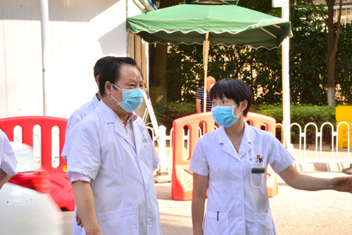 8月2日下午4时,院党委书记肖玉坤带队督导检查全院疫情防控工作、看望慰问防疫一线工作人员并现场办公。他强调,要深入学习贯彻习近平总书记关于疫情防控的重要讲话指示精神,落实落细中央和省市的决策部署特别是市委书记吴桂英提出的“五个到位”,坚持人民至上、生命至上,齐心协力打好疫情防控这场硬仗。党委委员、副院长蔡岳祥、陈胜文、纪委书记陈益清及相关职能科室负责人陪同。