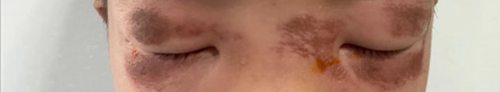 可哪知刚买回来不久,家中8岁的大儿子小龙(化名)因为从未见过电蚊液,在强烈的好奇心驱使下,拿在手中不停地把玩还试着拆解开来看看,而7岁的小儿子小洋(化名)也凑到哥哥面前。就在这时,哥哥一不小心把电蚊液给掰开了,瓶中的液体一下子全部洒了出来,其中一部分溅到了一旁的弟弟脸上。李女士听到孩子哭声过来后并没有在孩子脸上看到明显的伤痕,小洋也没有说疼,李女士就只用冷水给小洋清洗了一下。可哪知到了第二天早上起床后,小洋的脸上眼鼻处全是红斑!李女士这才急急忙忙的带着孩子来到立博体育 皮肤科就诊。