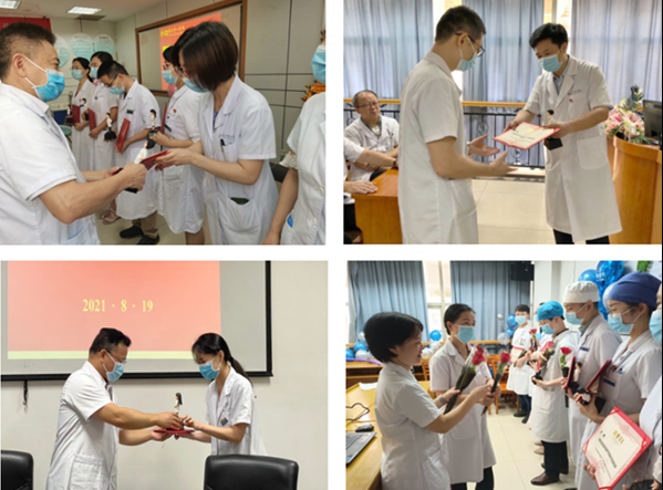 与此同时,党委副书记、副院长刘鸣江,党委委员、副院长蔡岳祥,党委委员、副院长邓平,党委委员、纪委书记陈益清也都在临床一线为大家送上慰问和荣誉。