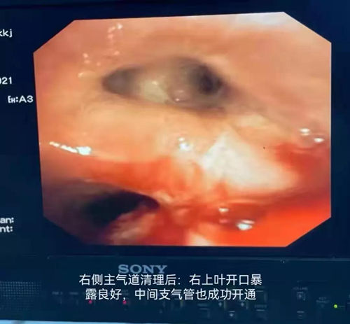 第二天,医疗团队又对患者做了开通右侧气道的尝试,非常欣喜的是,患者右侧气道也顺利疏通,患者右肺完全复张,缺氧状态明显改善,气管插管和呼吸机都成功解除。