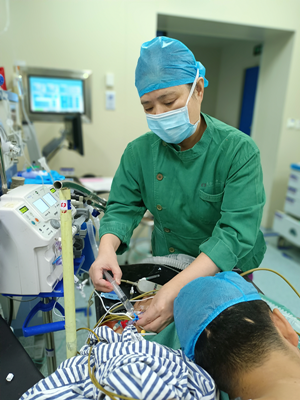 术中麻醉,手术室里、无影灯下,患者接受麻醉。当患者进入深度麻醉状态后,所有生命体征包括血压、脉搏、呼吸、心电、血氧饱和度等均要由麻醉医师全程监测管理,确保患者安全,一旦出现任何异常,麻醉医师需立即进行处理。“术中麻醉”是麻醉医师的“独门绝技”——手术中通过麻醉的方式让患者舒适地睡过去,安全地醒过来。而“技艺超群”的麻醉医师更是能做到该让患者什么时候醒来,就能什么时候醒来,李琼灿就是这样的麻醉医师。