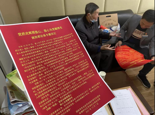 念及这几年来感受到的党的关怀与照顾,刘海滨老人不禁红了眼眶。他拉着党委办谭一啸同志的手,动容地表示,尽管自己和老伴都已疾病缠身,但作为老党员的他们,仍将秉持自己的初心为党的事业做出自己的贡献。老人表示,“党的光辉照我心,我心为党献终生”这句话就是一位老党员的心里话。