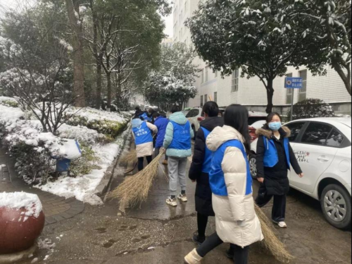27号下午,财务科党支部在支部书记汪辉同志的带领下也加入到了铲除冰雪的队伍中,他们来到住院部与山水颐园间的车道铲除积雪,大家不畏严寒,你铲我扫,相互配合,个个都干得热火朝天,经过一下午的奋战,道路的积雪全部都清除,有效保证了行人和车辆的安全。
