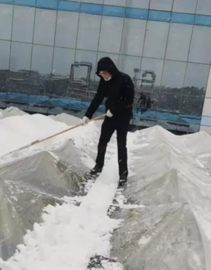 在保证安全的情况下,总务科由4名党员带头分四组展开行动:第一组3人对门急诊大厅楼顶进行除雪盖棚;第二组3人对门急诊楼、住院楼、山水颐园沿线道路两侧及人行步道旁的树上清除积雪;第三组3人对院区主道路及人行步道上的积雪进行铲除;四组3人对门诊、办公楼被大雪压垮的残枝进行清除转运,并安排人员冒雪给问病房运送瓶装氧气。