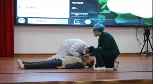 急诊医学科李坤医师、陈小娟主管护师配合开展心肺复苏实操演练。通过双方的合作演练,有效提高了军地联动、快速反应、协调配合能力,对于促进军地交流合作、完善应急协作机制,有效应对公共卫生突发事件,起到了极大的推动作用。