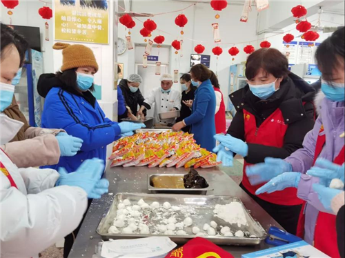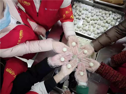 的党员、团员和工会会员等60余名志愿者们早早地到达食堂,在专业厨师指导下开始了忙碌的汤圆制作。