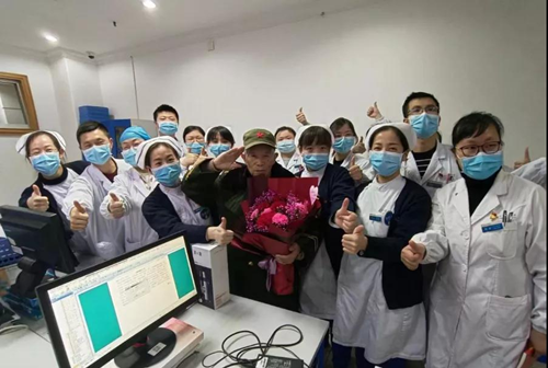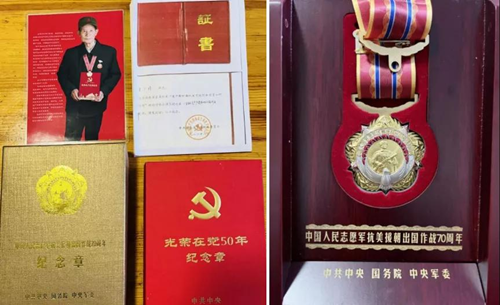 下午4:30,曾广琦老人在病房郑重穿上绿色冬军装,认真佩戴 “中国人民志愿军抗美援朝出国作战70周年”奖章于左胸前,由康复医学科护士长瞿丹丹陪同精神抖擞地来到康复医学科办公室,康复医学科全体党员医生、护士响起了热烈的掌声。曾广琦向大家认真地敬军礼,然后和大家分享他自豪的战斗故事。
