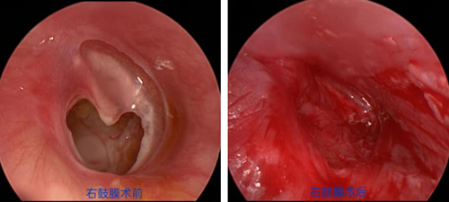 2月23日上午,敬前程顺利为患者施行了耳内镜下右耳鼓室成形术。术前经过颞骨高分辨CT扫描,患者的中耳结构良好,听骨完整。于是手术通过取患者的耳屏软骨及骨膜修补鼓膜穿孔。敬前程表示,该术式创伤小,切口隐蔽,修补成功率高。