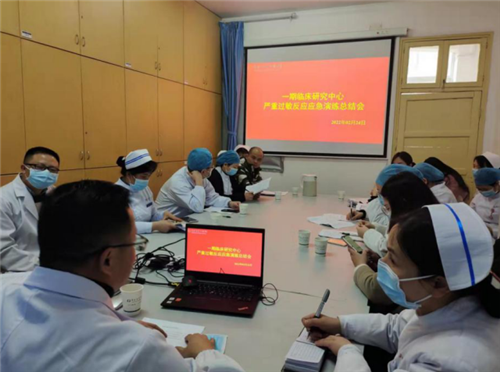 演练结束后,医务科副主任李琨,北院、颐和楼科护士长张灿芝,全科医学科副主任钟准,全科医学科护士长邓红专,北院办公室曾智先后对此次演练进行了现场点评总结。他们表示,此次演练流程顺畅,达到了预期效果,同时也指出了演练存在的不足之处。此次应急演练在院领导指导下,医务部、护理部、应急办、全科医学科等各科室的配合和支持下,进行得非常成功。通过演练既检验了I期临床研究中心医护人员的业务水平,增强了科室团队组织协作能力,提高了医护人员对严重过敏反应的应急反应能力和快速处理能力,同时也加强了应急处置时抢救团队的相互协作、分工处置的水平,切实提高了应急处置的实战能力。