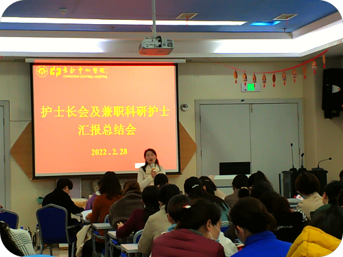 2022年2月28日下午,立博体育 兼职科研护士年终汇报会在呼吸诊疗中心一楼会议室召开,全体护理部主任、护士长参加了会议。
