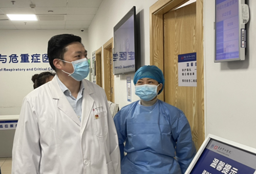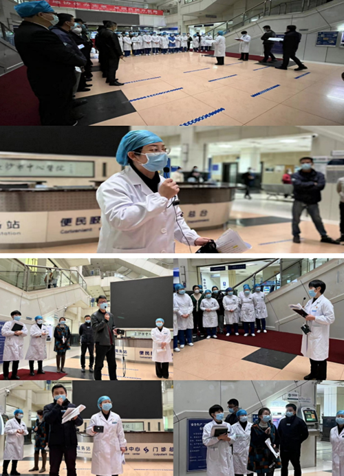 门急诊办在综合门诊大楼组织开展“门诊发现新冠核酸检测阳性病例应急演练”。