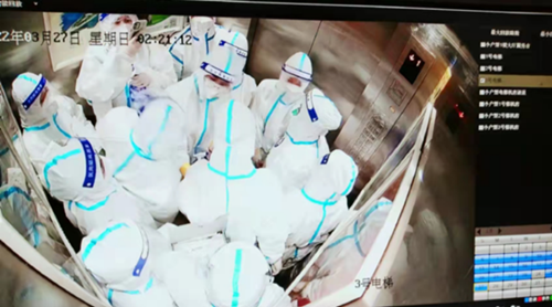 凌晨2:21,核酸采集小组完成公寓楼采样,13个大白在电梯集合完毕