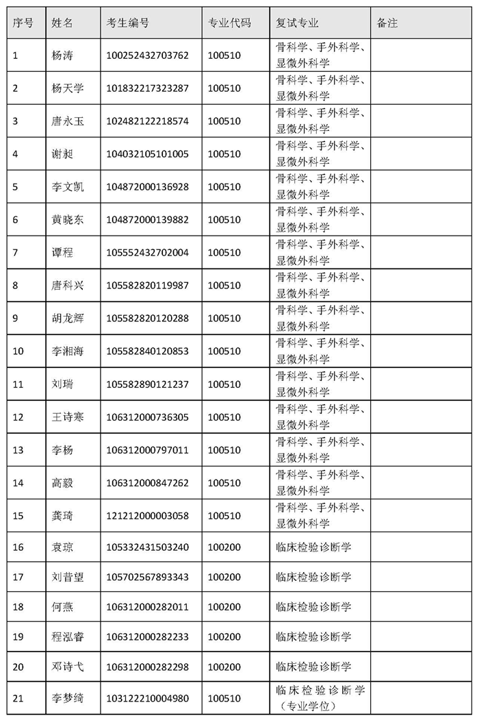 南华大学附属长沙中心立博体育 第一批调剂复试名单公示