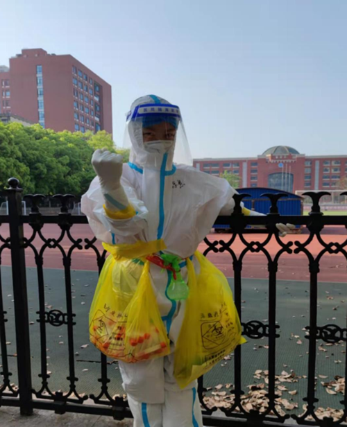 陈慧所在的采集队的任务是为雅礼中学封控区进行核酸采集,她们身着防护服,腰间挂着试管、试纸、手消毒剂等,挨家挨户爬楼采集核酸,长沙四月的天已经转暖,加上爬楼的负荷,让人气喘吁吁,憋闷的防护服下,全身很快就汗湿了,面屏上全是水蒸气,看不清楼道,认不出门牌号,这使本来繁重的采集任务更加艰难。然而打开一张张门,见到同学们清亮的眼睛、礼貌的态度,听到他们真诚的一声声“感谢、辛苦了”,让她忘却了防护服的憋闷和身体的疲惫,手里动作不禁放轻,声线变柔,只希望给孩子们减轻一些焦虑,多一些温暖。封控区的采集任务繁重,每天都要从上午九点一直持续到晚上七八点,面对超长的工作时间和滴水未进的艰辛,陈慧和队友们却没有丝毫报怨退缩,只想着每天如何按时完成采集任务。