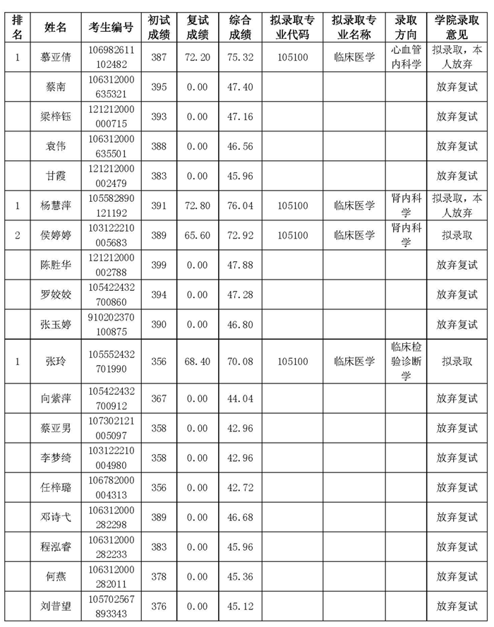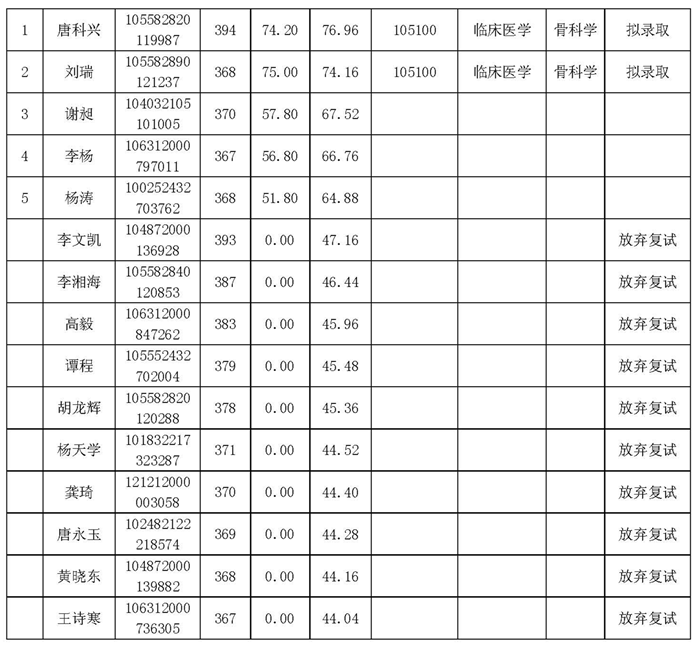 根据《南华大学2022年硕士研究生招生复试工作方案》《南华大学附属长沙中心立博体育 2022年硕士研究生调剂与复试录取工作方案》,经南华大学附属长沙中心立博体育 研究生招生工作领导小组审核,现将2022年硕士研究生第一批调剂拟录取名单予以公示,公示期为2022年4月15日-22日,如对复试结果有异议,请联系内部监督科,联系电话:0731-85668104。
