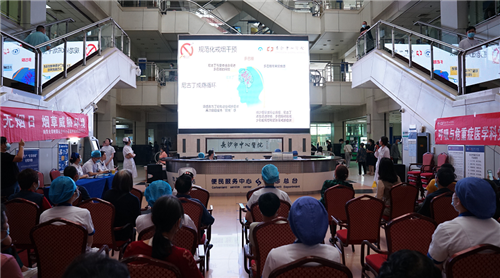 活动一开始,由呼吸与危重症医学科副主任医师王青博士主讲的《烟草威胁环境》就引起了前来就诊的患者及家属的关注,大家坐在门诊大厅的椅子上认真学习,不时拿出手机将医生讲授的知识点拍摄下来,有奖问答环节更是积极参与抢答,在美小护们现场教学环节,患者和家属们也站起来,跟着护士们一起做呼吸操。现场氛围既热闹又融洽,患者们也表示,他们很喜欢这种寓教于乐的健康教育方式,能将严谨而枯燥医学知识以通俗的方式入心入脑,宣传效果更好。
