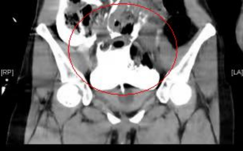 根据张迪的描述,医生先为张迪行了妇科相关检查及腹部CT平扫检查,但是CT除了发现少量盆腔积液外未找到其它问题,考虑到患者腹痛在加重,急诊科医生紧急请泌尿外科前来会诊。泌尿外科医生仔细追问其病史,结合CT检查,考虑存在膀胱损伤可能,立即留置导尿管,见有少量淡红色血尿。最后经过膀胱造影CT检查,张迪确诊为腹膜内型膀胱破裂,腹腔内已有大量尿液,所以才引起腹膜炎刺激性腹痛等症状。