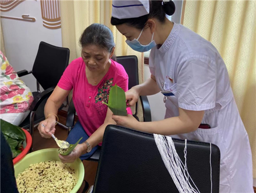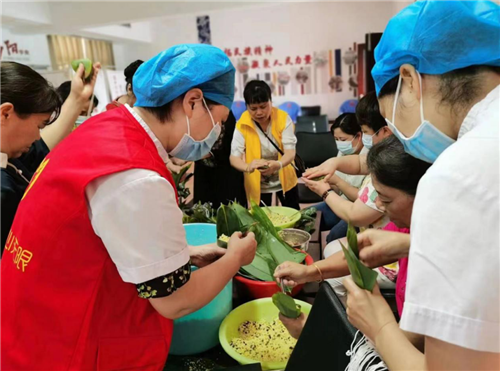 恰逢端午佳节之际,志愿者们联合社区工作人员还将手工民俗“包粽子”带到了社区。裹粽叶,捏米团,打绳粽,社区居民和志愿者们忙得热火朝天。“你这个米放多了会包不严”“妹子你看咯这个绳子要从这里绕晓得不”……心灵手巧的社区大姐们还手把手教起了志愿者,浓浓的端午氛围就这样有爱地传递了出来。