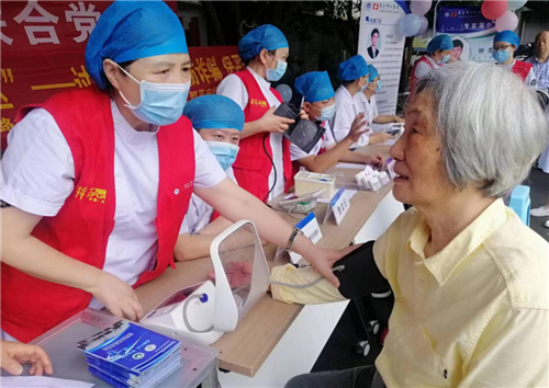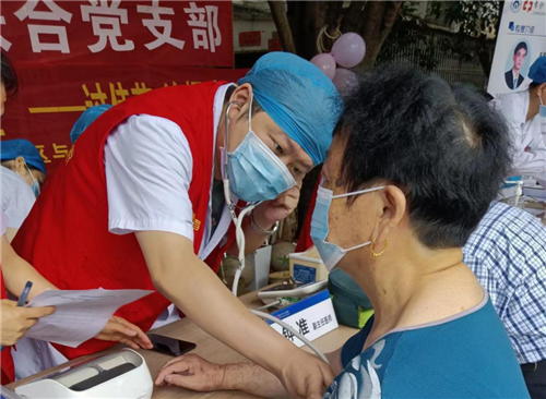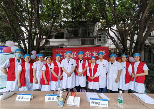 北院全科医学科、中西医结合科、门诊,派出黄建乐、王艳霞、李成、邓红专、肖智权、王凤、钟准、王丹、胡晓娜、马惠玲、黄巍、邓彬彬、王煦喆13位党员志愿者,为社区居民免费提供就医指导、健康咨询、中医特色治疗、康复治疗、测量血压和血糖等服务。