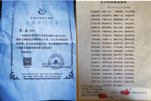 “有很多患者也是我们学习的榜样,在我们老年医学科,许多老年患者耄耋之年不忘初心,一心向党为人民服务,我们要向他们学习。”老年医学科党支部副书记缪琴介绍,住在6床的秦爷爷今年已94岁,他在六十岁的时候郑重的写下了“共产党员心中只有党的事业,为了党的事业可以献出一切,献出遗体是我自愿”的心愿。今年7月,他催促着家人协助其联系红十字会的工作人员完成了人体器官捐献登记。