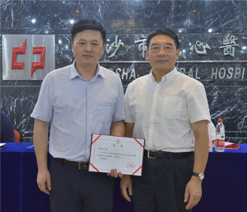 副院长刘鸣江教授当选为新一届主任委员,普外科主任谢开汉当选副主任委员,神经外科主任樊天禹、泌尿外科副主任刘玉明当选委员,创伤骨科、手足显微外科蒋亮东博士当选为青年委员兼秘书。长沙市医学会会长黄赣湘为主任委员、副主任委员、常务委员颁发聘书。