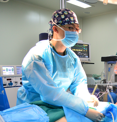 刘松华从刘婷孕中期第一次进行评估之后就开始为其寻找最佳麻醉方案做“攻略”。“患者由于颈椎融合畸形,曾在全麻过程中产生过缺氧危象并抢救,全麻会不会再次产生缺氧危象危及母子安全呢?脊柱如此严重侧弯畸形,矫形术后结构改变更加厉害,椎管麻醉也不可行……有什么办法去解决呢?”这个难题一直困扰在刘松华医师的脑海中。思考再三后,刘松华决定采用当前先进的超声引导下神经阻滞技术来辅助解决困扰他半年之久的难题。在术前用超声对刘婷实施了全面的术前评估,反复确定神经阻滞的部位及穿刺的入路,并探查了周边解剖结构已存在的畸形改变,而且对刘婷的气道也进行了超声评估。