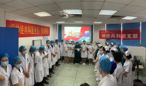 8月19日,为庆祝第五个中国医师节,神经内科党支部开展“医心向党、踔厉奋进”主题党日活动,以此团结凝聚全科医务工作者与党同心、与党同行,不忘初心、牢记使命,用实际行动担负起推进健康中国建设使命。科室全体党员、积极分子、全体医护人员参加了此次活动,活动由神经内科党支部书记王振主持。