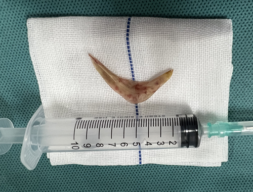 该院胸心外科主任、主任医师袁跃西接诊患者后,发现鱼刺确实已经穿破了食管到达了胸腔,“情况不乐观……必须尽快住院手术!”听到袁跃西主任的详细分析,刘国强老人这才害怕起来。入院后,胸心外科在经过讨论及充分的术前准备后,为老人进行了全麻胸腔镜下微创手术。术中发现鱼刺穿破了食管,露出了刺尖,万幸的是这根鱼刺避开了重要血管。胸心外科袁跃西、杨继承主任医师强强联合,用血管钳小心翼翼地拔出了一根呈弧形,长约4cm的鱼骨。同时发现气管膜部有一2cm裂口,于是立即对食管和气管进行了修补。术后,刘国强老人由于感染严重,被转至该院重症医学科接受进一步的监测治疗。
